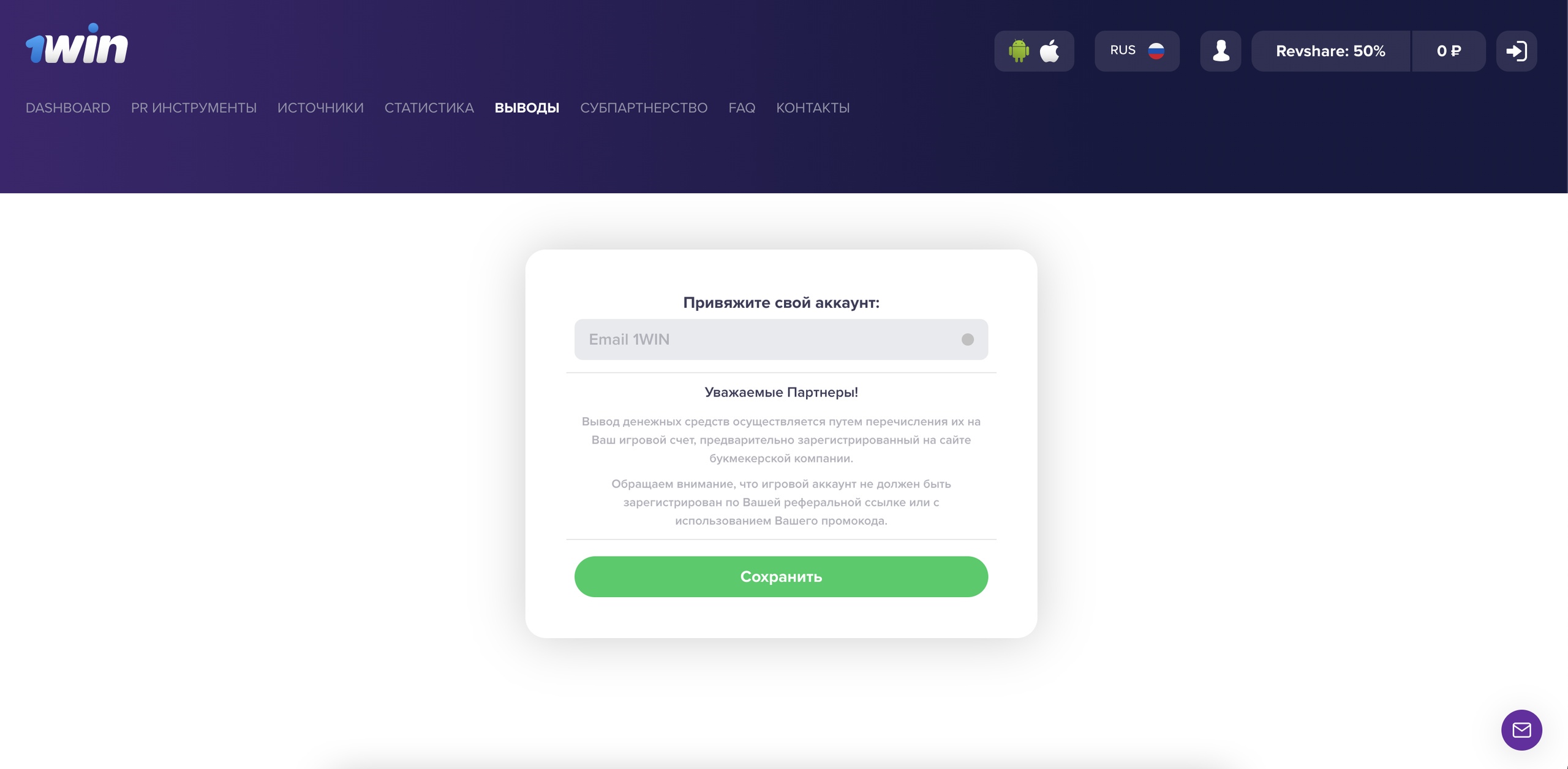 - Почта — partner@1win.xyz
