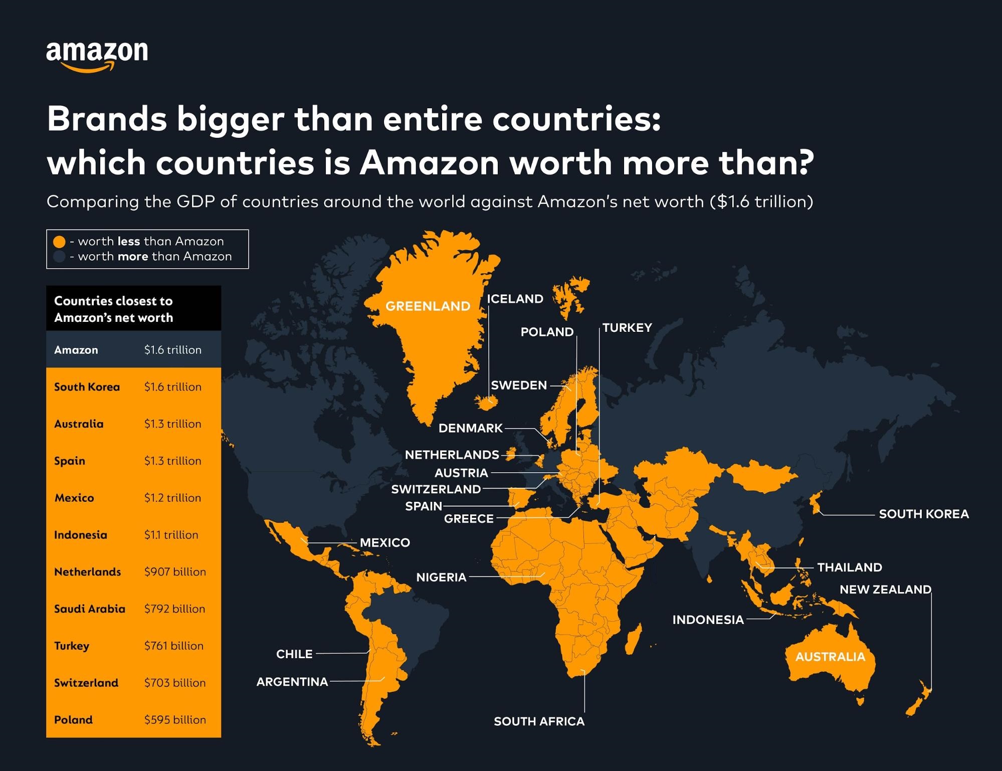 Полпланеты пользуется услугами Amazon почти ежедневно, и, тем не менее, эта компания занимает третье место среди крупных технологических компаний с оценкой в 1,6 триллиона долларов, и она зарабатывает больше денег, чем в 92% стран мира. Если мы разделим их на количество сотрудников этой компании, то будет ясно, что каждый сотрудник зарабатывает 351 531 долларов в год, что даже больше, чем самый высокий доход на душу населения в мире.