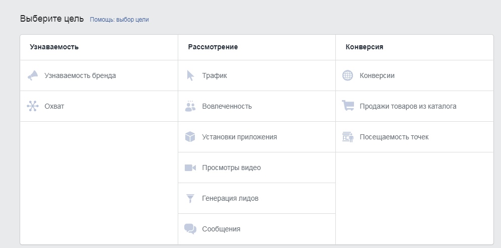 Сейчас вам потребуется определиться с целью. Их, на самом деле, немало — от трафика до конверсии. Все зависит от того, что вы желаете получить от рекламы. А пока предлагаем поговорить о тех. части. Установите цель вашей РК.
