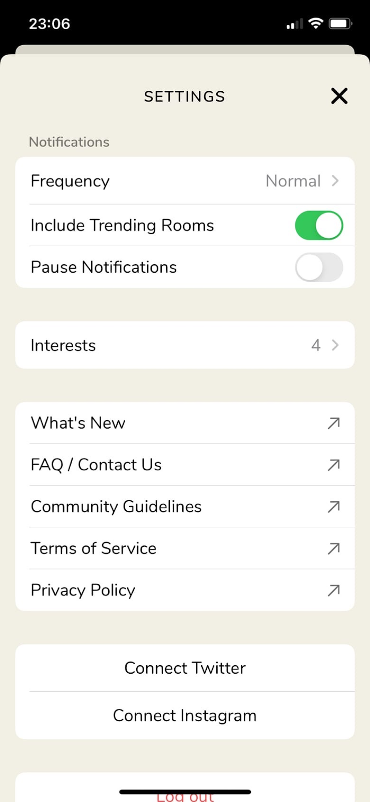 Настройки и прочее в Clubhouse