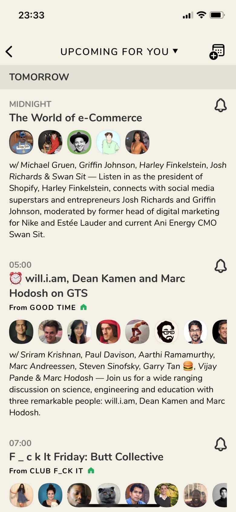 Говоря об этом, в Clubhouse есть расписание. Комнаты можно создавать не прямо «на месте», но также их планировать.