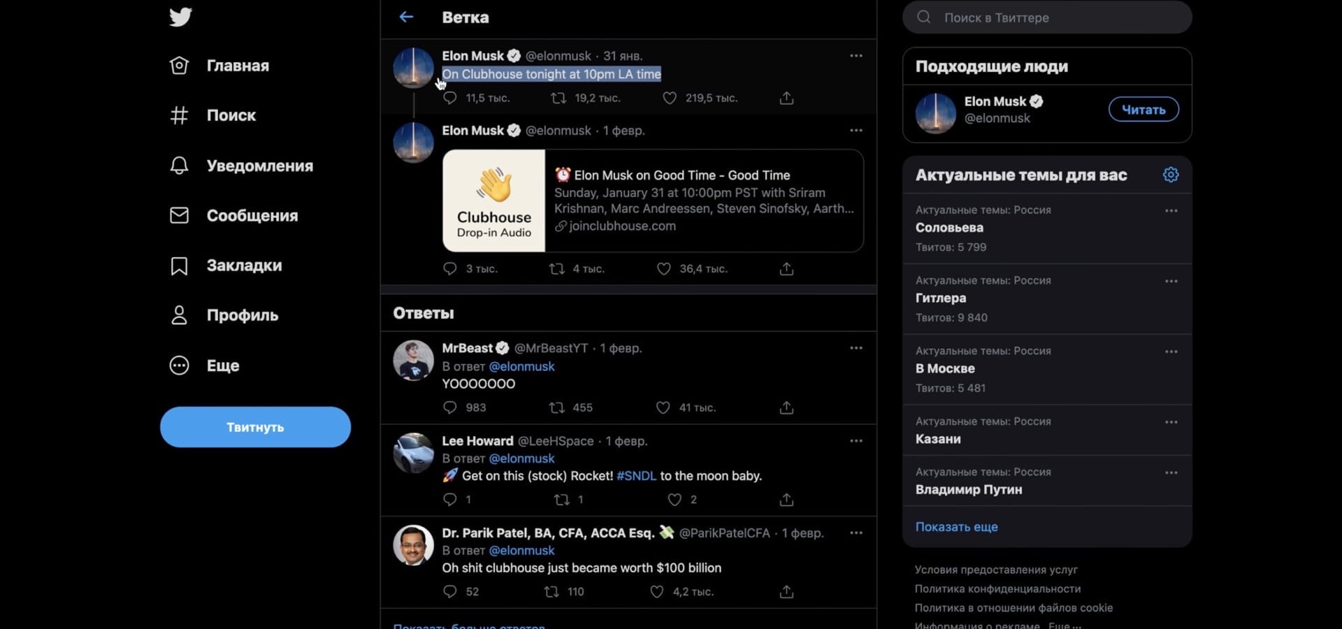 Все было достаточно спокойно, пока в Clubhouse не появился Илон Маск. Он поучаствовал в одной из бесед и рассказал об этом в своем Twitter. После этого все взорвалось. Потому что все, чего касается Илон, набирает дикую популярность. Так произошло и с Clubhouse.