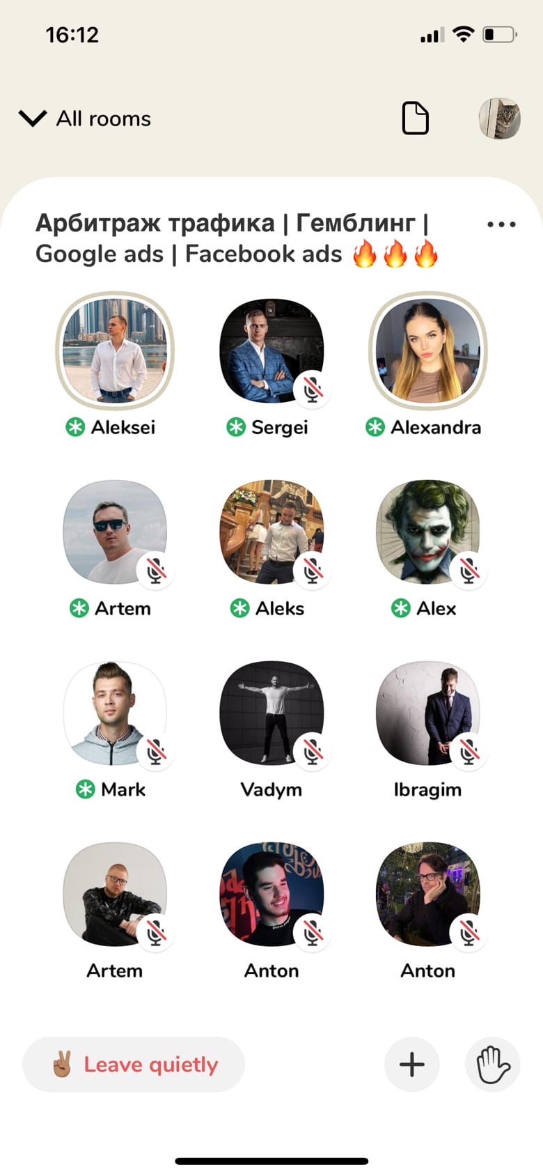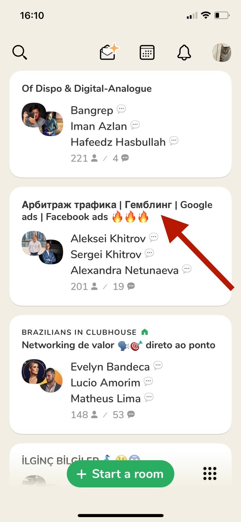 Мы видим название комнаты. Например, вот и про арбитраж трафика кое-что попалось. Достаточно интересная тема, возможно, вы захотели что-то о ней послушать.