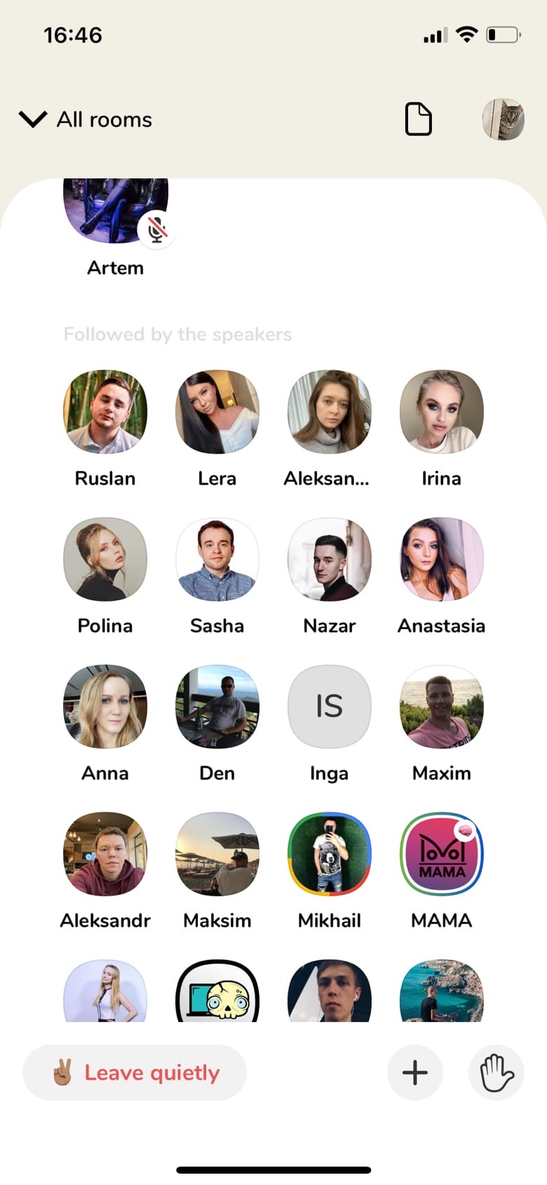 Если спуститься чуть ниже, то можем увидеть людей, которые слушают данную комнату. Первая категория людей — это те, на кого подписаны сами спикеры, а потом идут все те, кто просто присоединился к комнате.