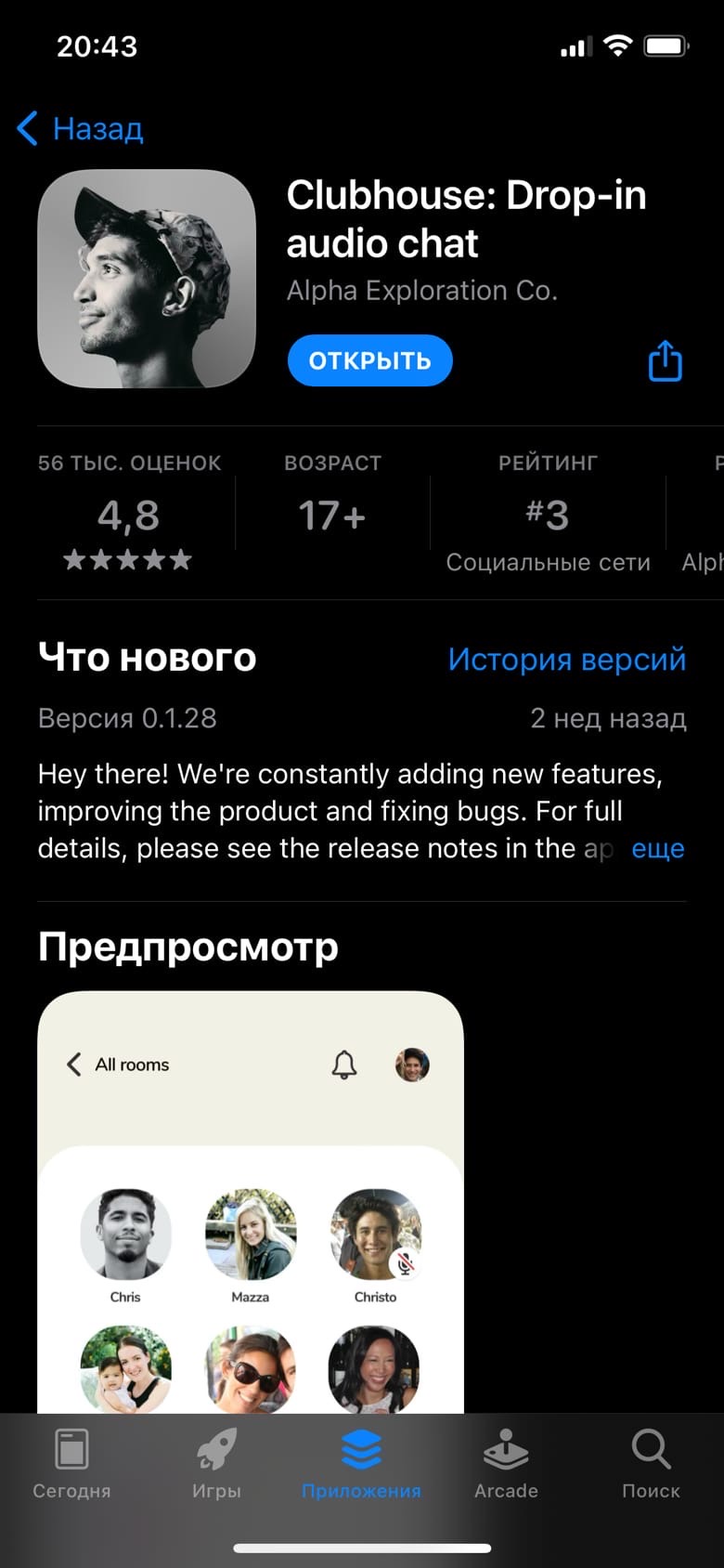 Сейчас соцсеть доступна только на iOS и на iPadOS, но обещали, что скоро выйдет клиент и под Android (весной или летом 2021 года). Соответственно, если у вас iPhone, то вы спокойно можете зайти и скачать приложение. Если же у вас смартфон на Android, но есть iPad, то никаких проблем нет, скачиваете приложение на планшете, но можете дождаться, когда оно выйдет и под Android.