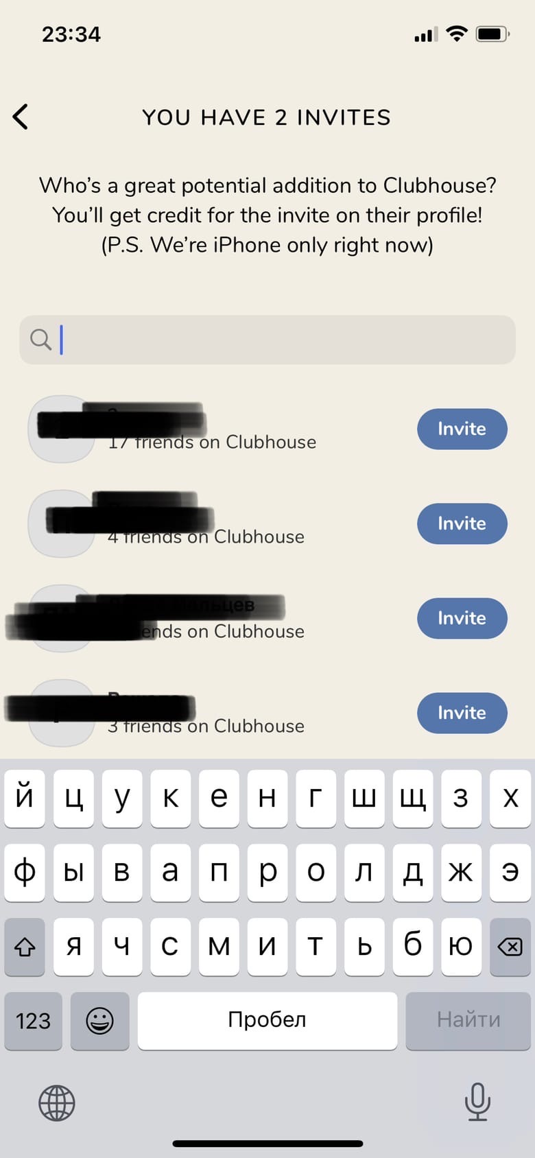 - Вы также можете получить инвайт (приглашение). То есть, кому-то уже открылся доступ к Clubhouse и у него есть инвайт. Стоит сказать, что инвайты ограничены (изначально дается 2 штуки на аккаунт, но потом могут дать больше).