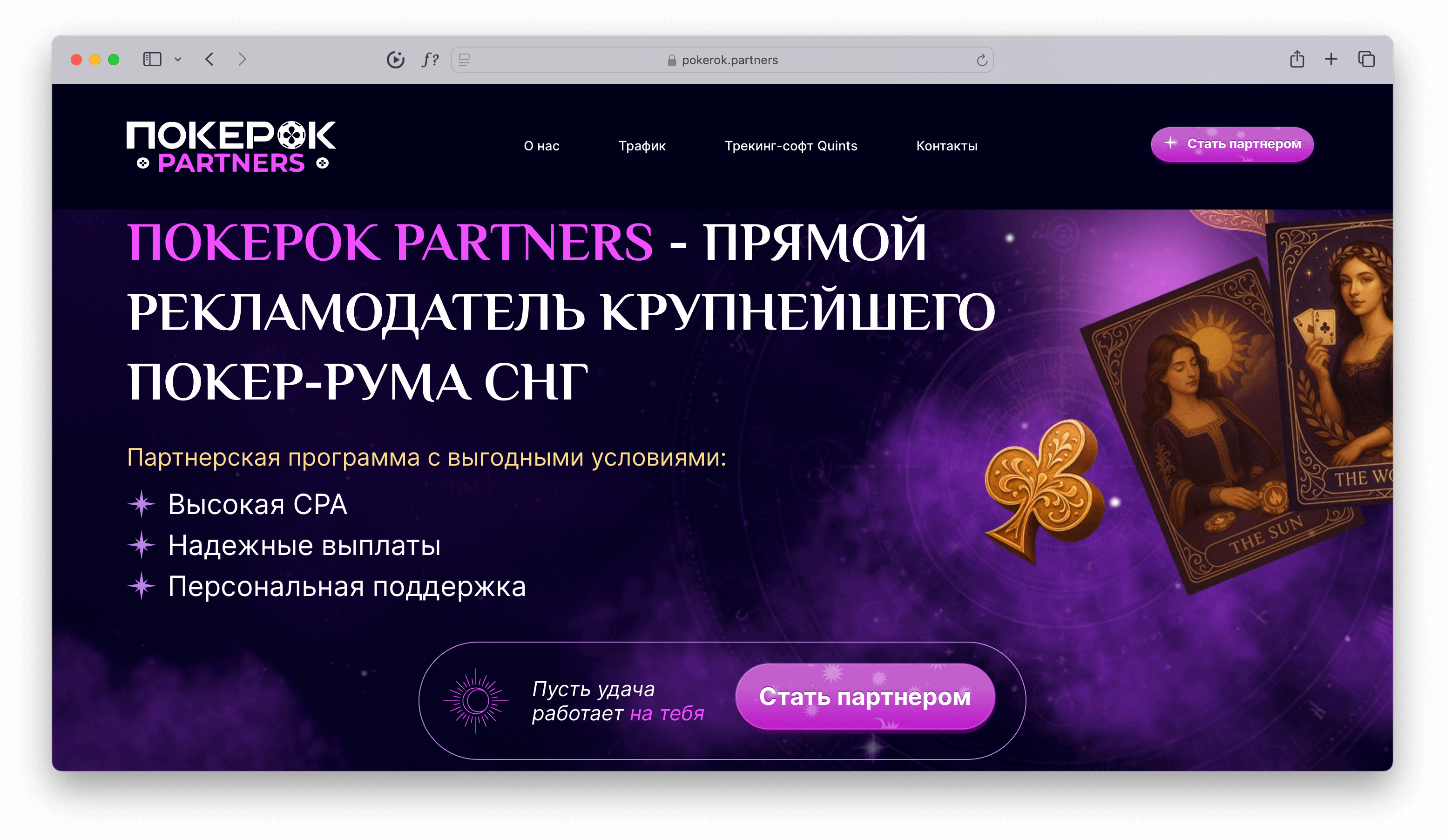 ПокерОК Рartners — официальная партнерская программа покер-рума ПокерОК. Партнерка запустилась в 2019 году и за достаточно короткое время превратилась из обычной покерной сетки в лидера отрасли с выгодными условиями сотрудничества и высокими стабильными выплатами.