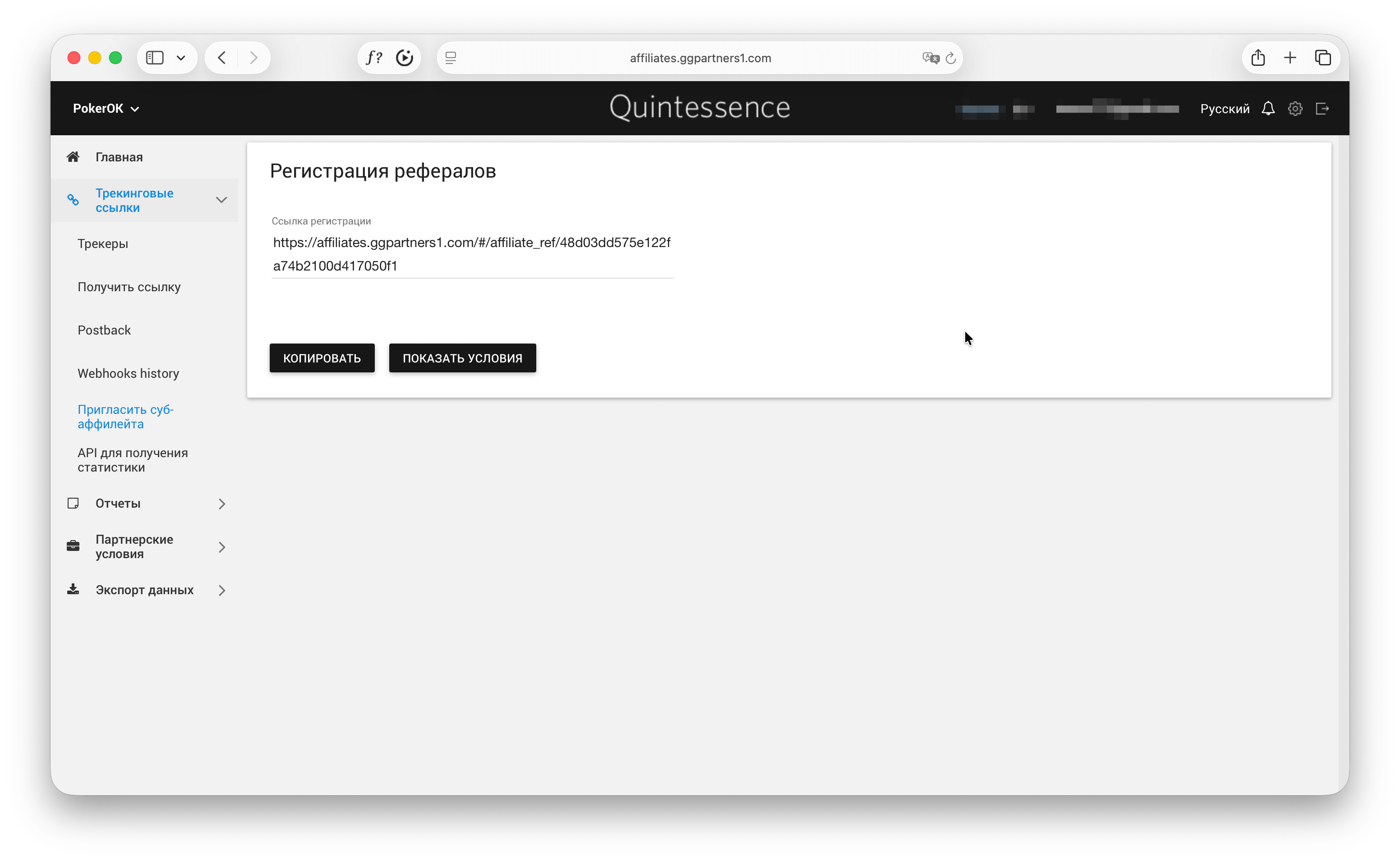 В ПокерОК Рartners действует также субпартнерская программа. Привлекайте арбитражников и получайте процент от их дохода. Чтобы получить реферальную ссылку, зайдите во вкладку «Пригласить суб-аффилейта».