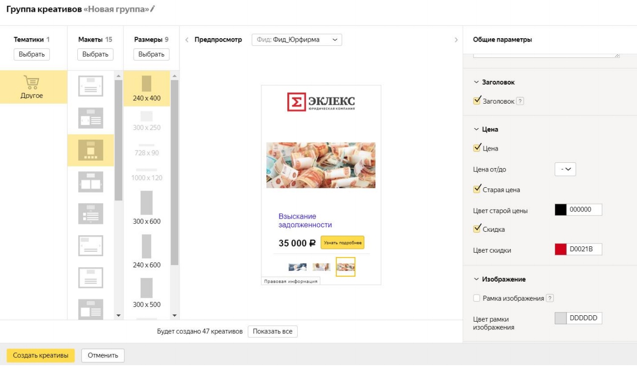 На данном шаге вы занимаетесь с визуальным оформлением рекламы. Установите требуемый пункт и максимальное число форматов.