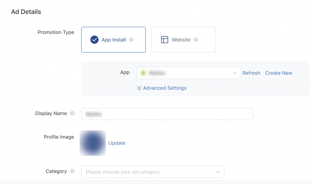 - Вид рекламы: все зависит от цели РК, которую вы установили для своего объявления в Тик Ток. Тут можно выбрать один из двух типов продвижения: инсталл прилы и ресурс в интернете.