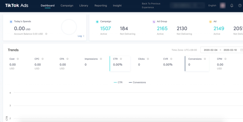 Как только ваш рекламный аккаунт Тик Ток будет зареган, вы сможете управлять панелью инструментов ТТ Адс.