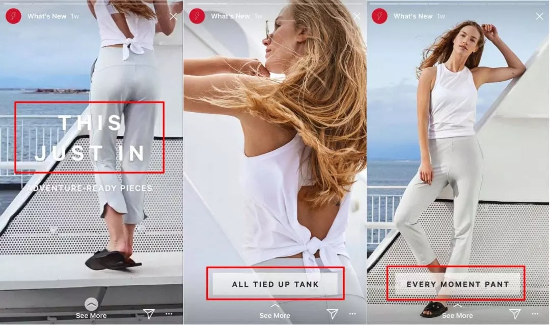Например, Lululemon добавляет новые продукты в свои истории, чтобы сгруппировать их в основные моменты. Это позволяет посетителям узнавать больше о новинках.