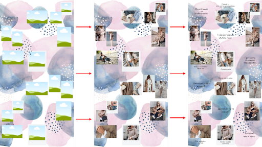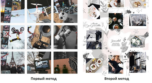 - Создание коллажей, оформленных в единой стилистике и соединяемых с помощью «фона-подкладки» при постинге.