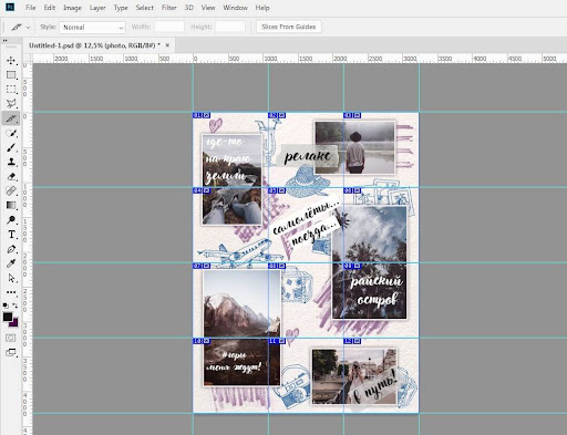 Несколько более сложно происходит создание бесшовной ленты для Инсты в ФШ с помощью коллажирования с «подкладкой». Для этого нужно сделать следующее: