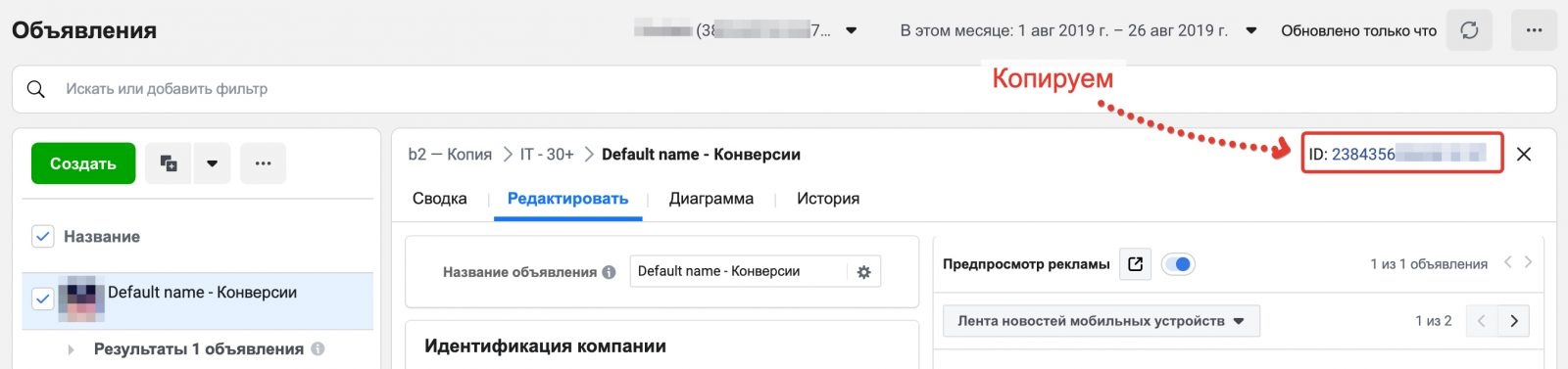Сначала нам потребуется скопировать идентификационный номер объявления, в новом оформлении вы можете сделать это, кликнув сюда: