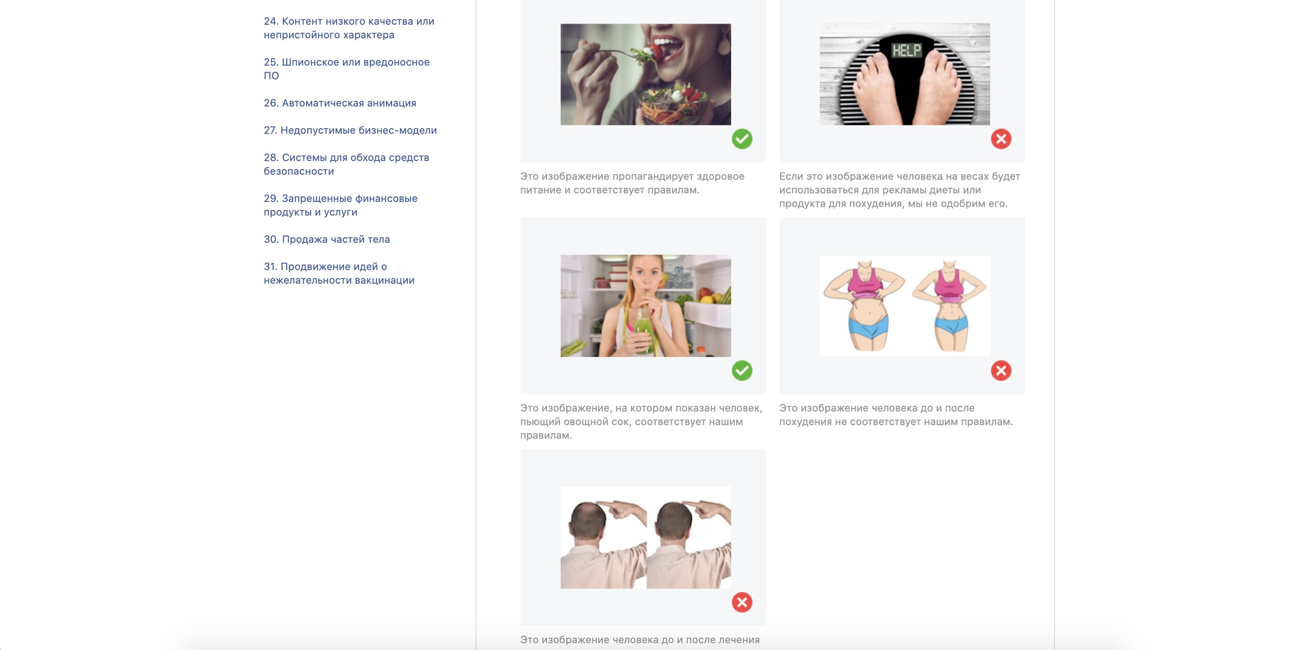 Ваша реклама не должна заставлять пользователей плохо относиться к себе или своей текущей ситуации. Плохие эмоции — не лучший пользовательский опыт, поэтому, если вы это сделаете, ваша реклама будет отклонена.