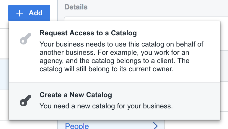 - Перейдите к своему Facebook Business Manager, и в разделе «Источники данных» на боковой панели и выберите «Каталоги».