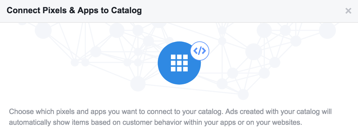 - Чтобы подключить пиксели и приложения к каталогу, выберите тот, который вы только что создали.