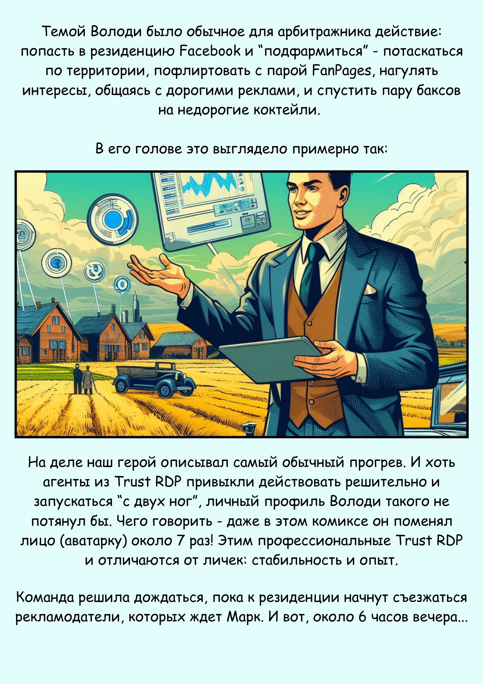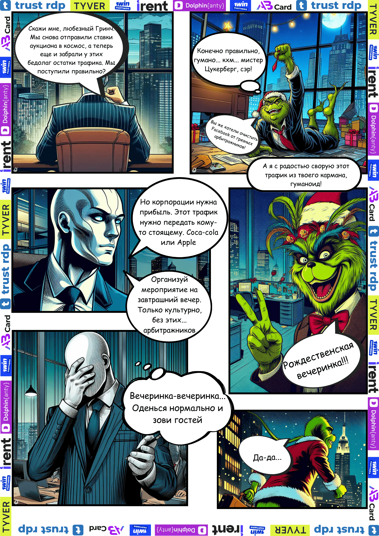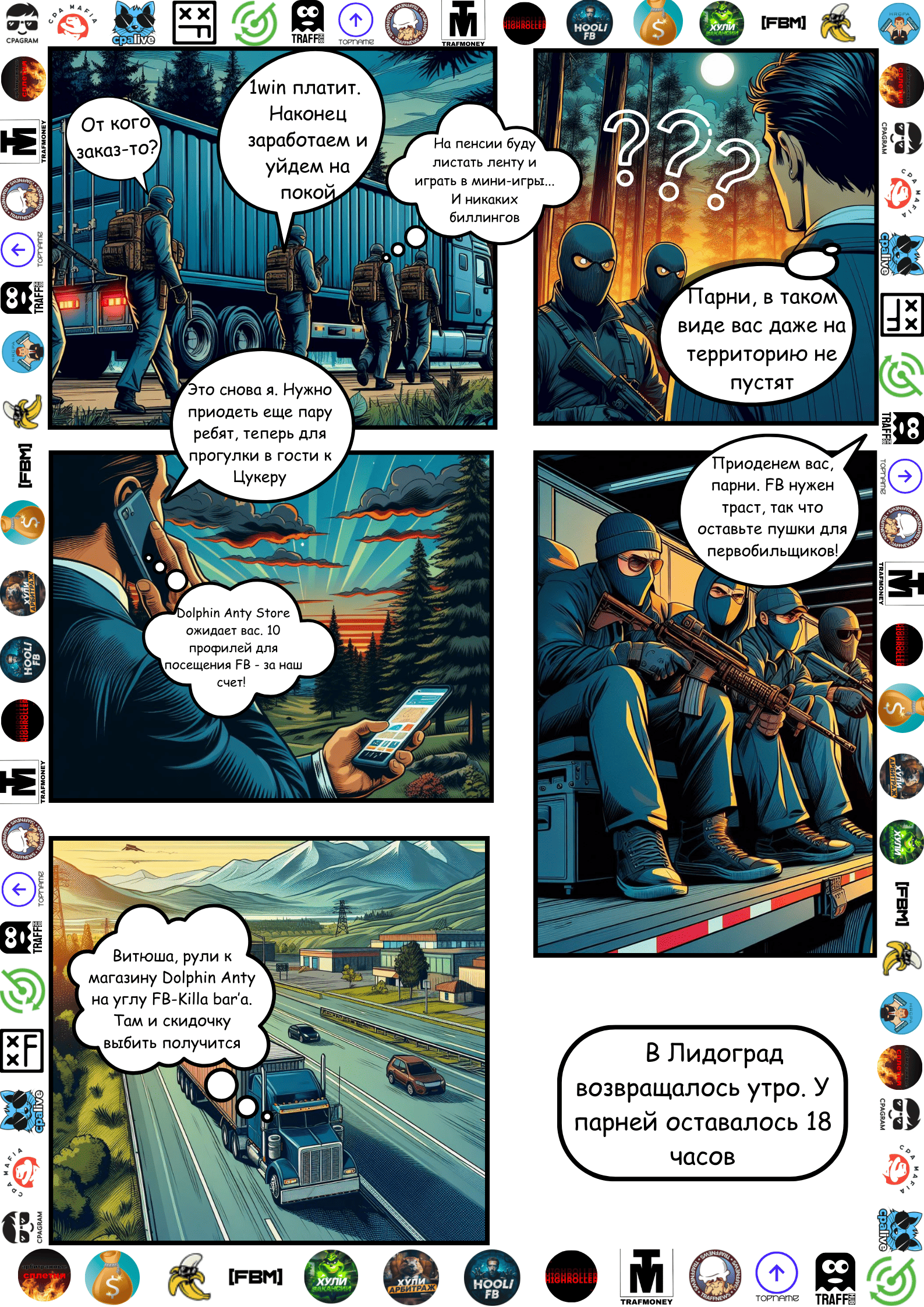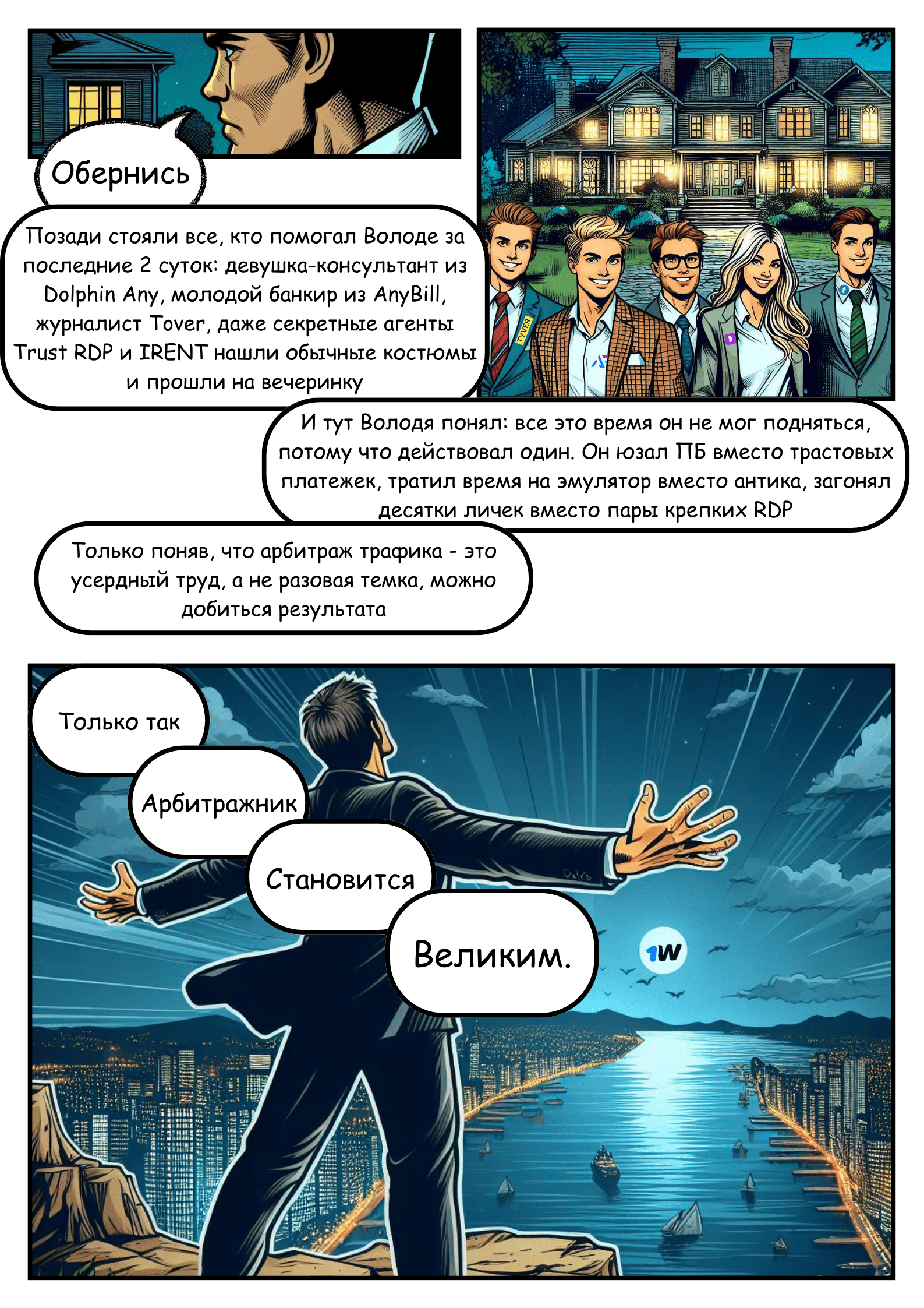 Комикс создан арбитражниками для арбитражников. Авторство комикса принадлежит проекту Starlight Ads — new marketing era: https://t.me/staraffs