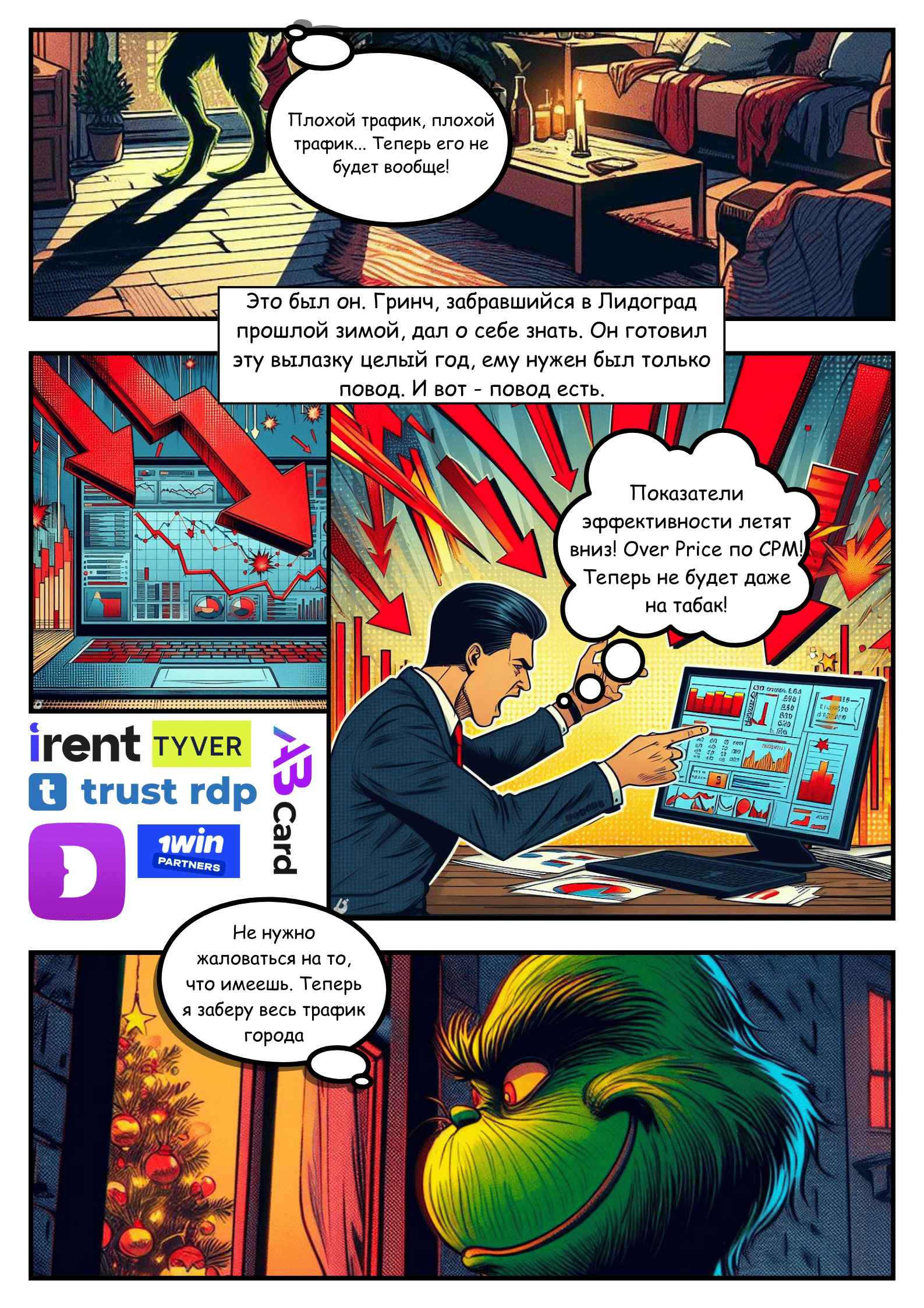 Как-то под новый год мы сидели и думали — почему реклама в нашей индустрии стала такой скучной? Это нужно как-то менять. И делать это так, чтоб она была и интересной, и полезной. Что получилось — смотри ниже! Настрой масштаб так, чтобы было удобно читать на твоем устройстве, — весь комикс напечатан на картинках.