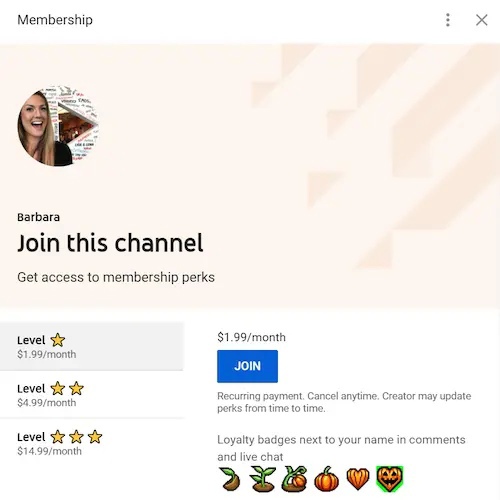 - Включение членство в каналах: как только вы наберете 5000 подписчиков, вы можете пригласить пользователей стать платными участниками вашего канала. Вы можете предложить им такие привилегии, как особые смайлики, значки, дополнительный контент и многое другое.