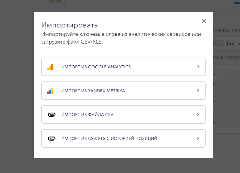 - посредством загрузки из площадок для проведения аналитики (Google Analytics или Yandex.Metrika);