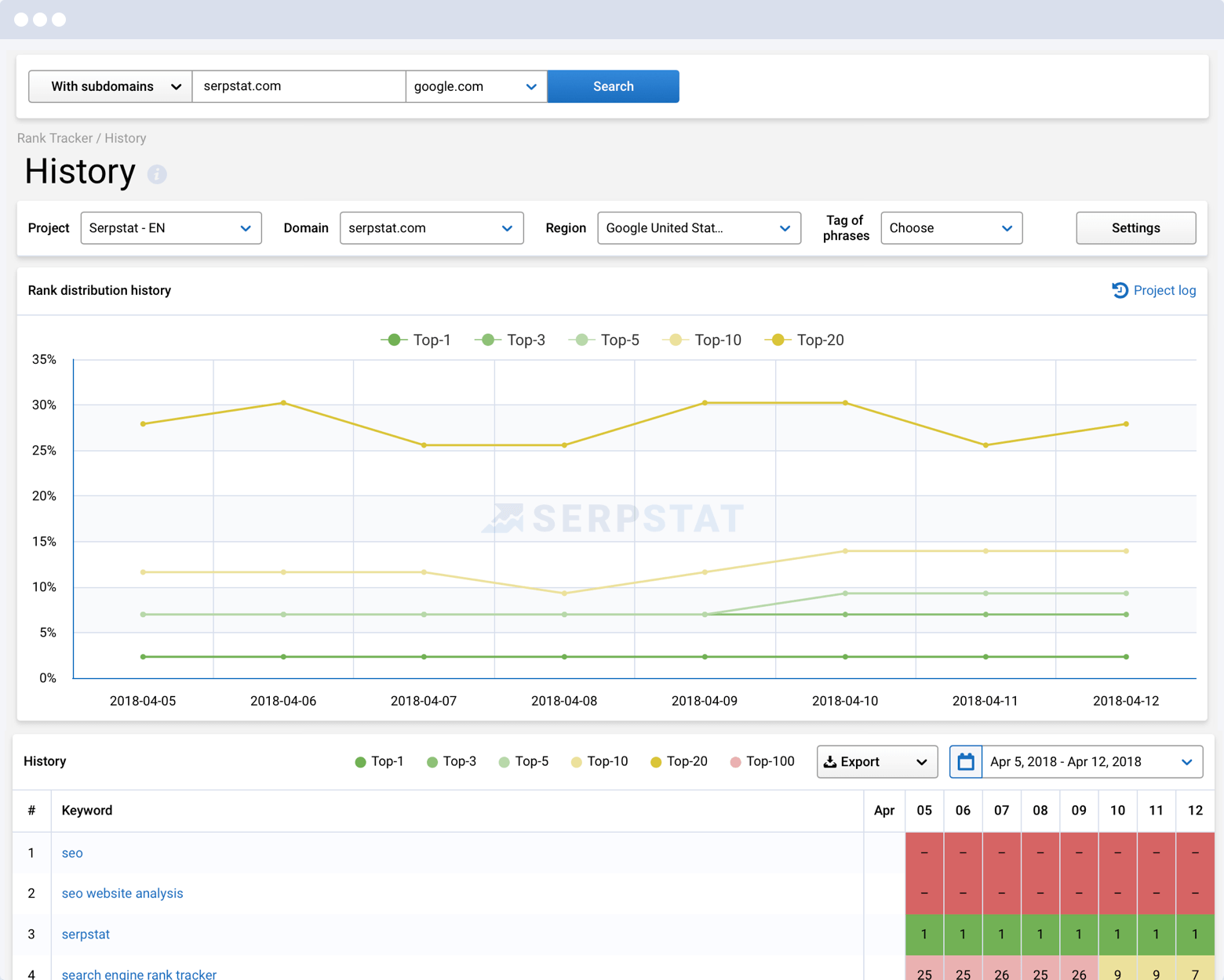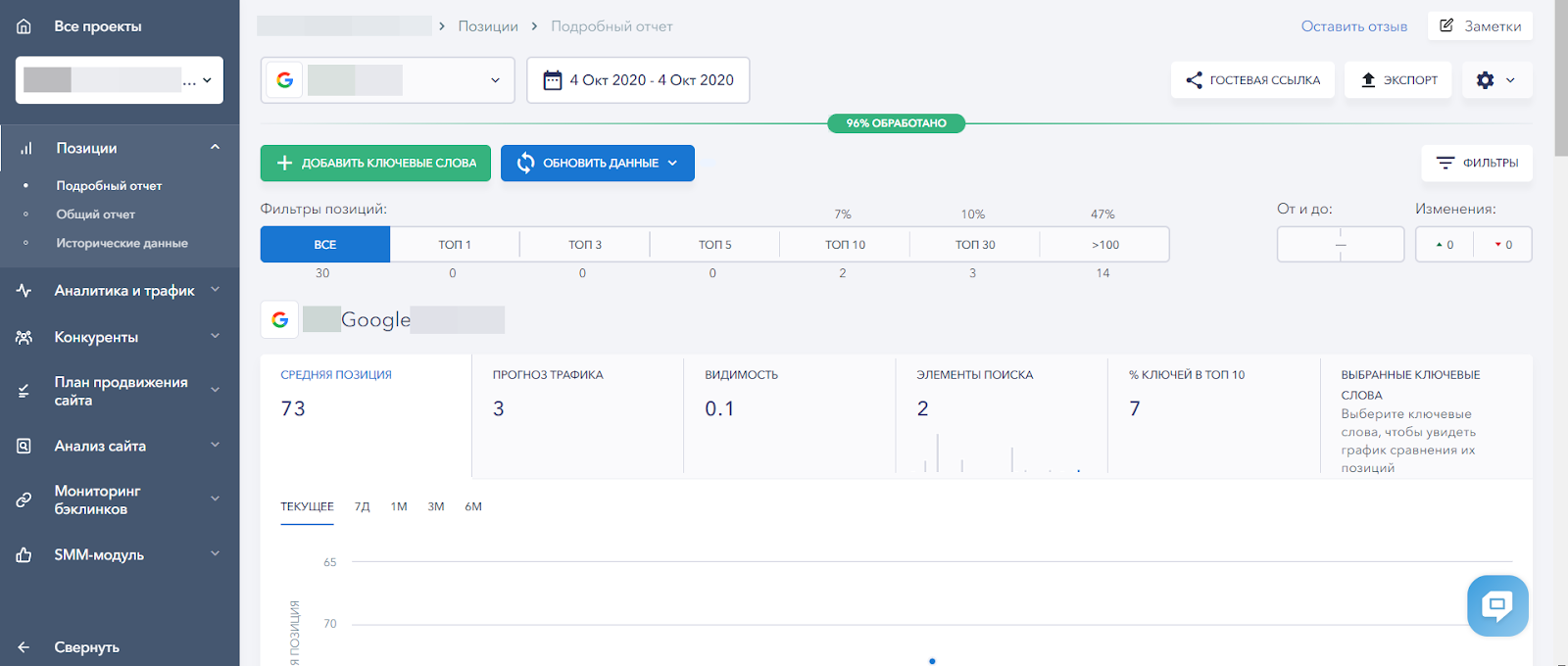Инструмент для проведения поисковой аналитики, в котором присутствуют все необходимые функции для проверки и отслеживания позиций сайта по ключевым фразам.