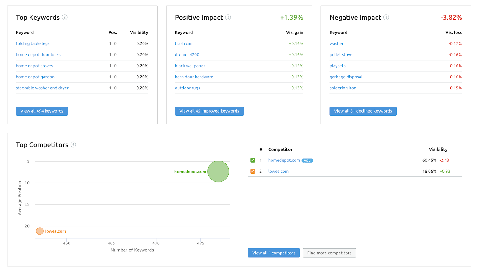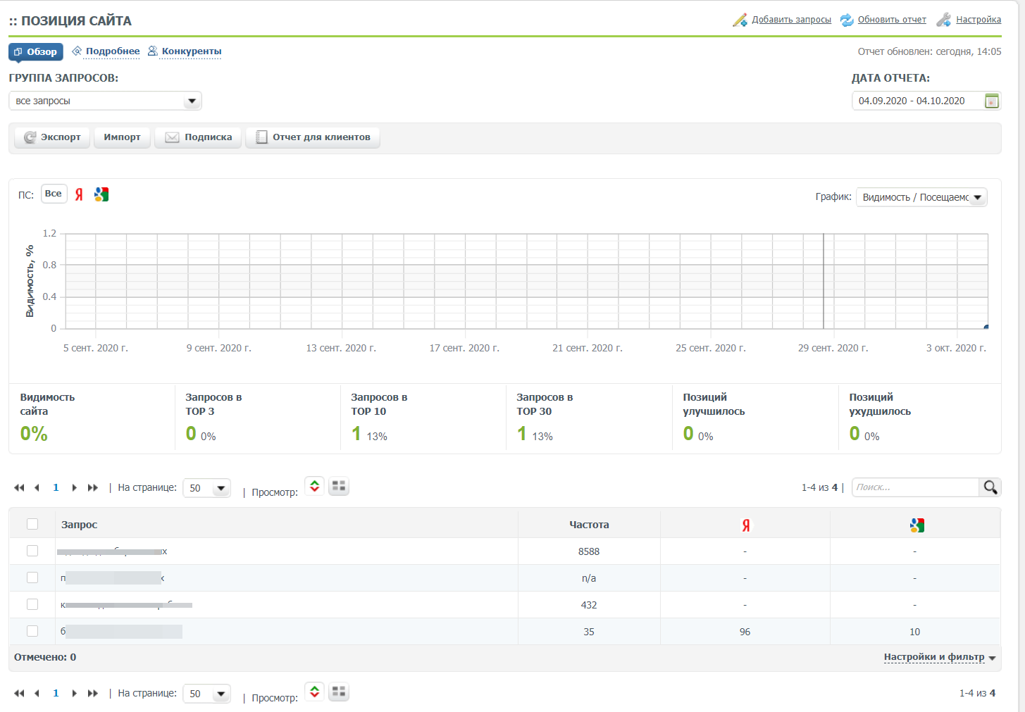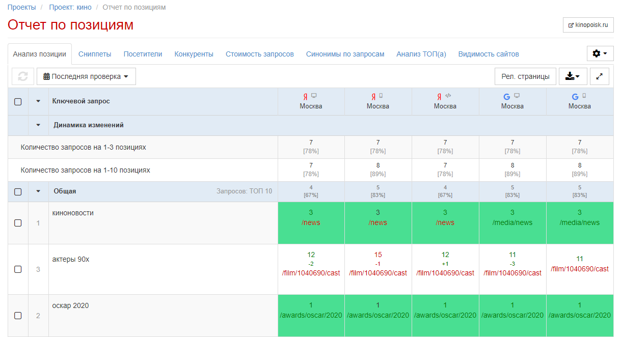 При последующих проверках станет доступна информация по динамике видимости: по каким запросам видимость стала лучше, а по каким хуже.