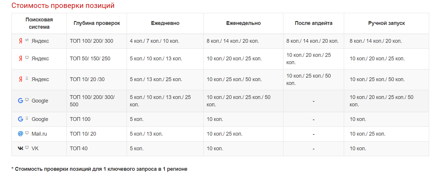 При фиксированной стоимости за проверку, цена проверки 1 запроса в 1 поисковике составит 0,0006$.