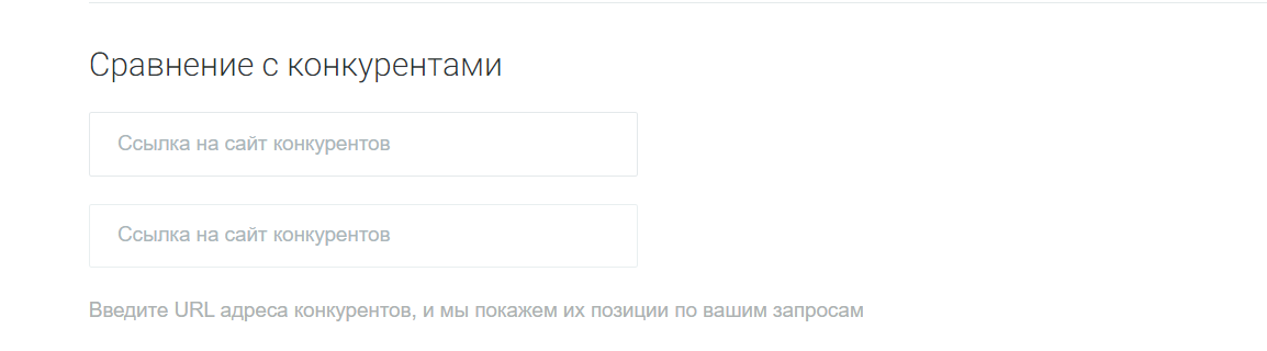 - Вы можете указать до 2-х ссылок ресурсов конкурентов. Система осуществит сбор позиций конкурентов по вашим требованиям (за данную функцию платить не нужно);