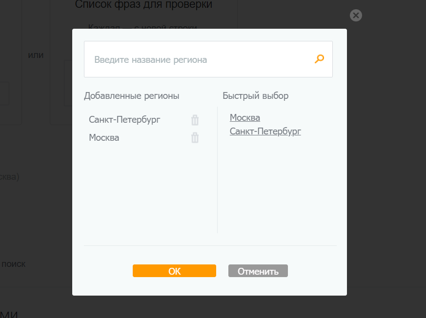 - Проверка позиций только в указанной вами области (к примеру, исключительно в Москве).