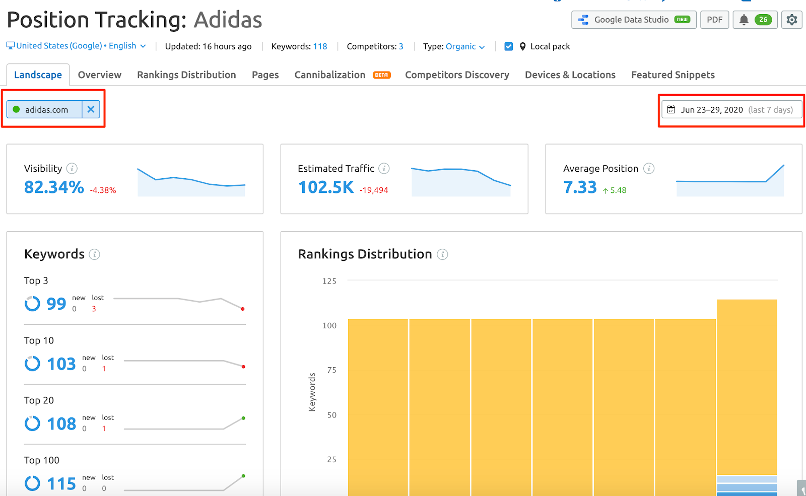 Инструмент предоставляет функционал по отслеживанию всех ваших ключевых слов с помощью ежедневных обновлений, слежению за конкурентами, созданию отчетов в формате PDF, проведению исследований ключевых слов и многое другое.