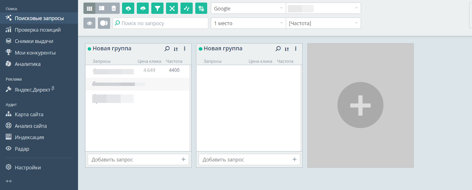 Также у вас будет доступ на группировку ключевых фраз — это полезная функция, если требуется мониторить позиции по тем или иным категориям.