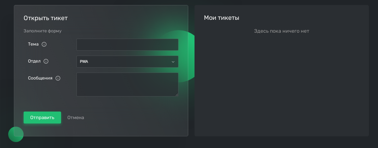 Через «Тикеты» можно обратиться в службу поддержки пользователей: